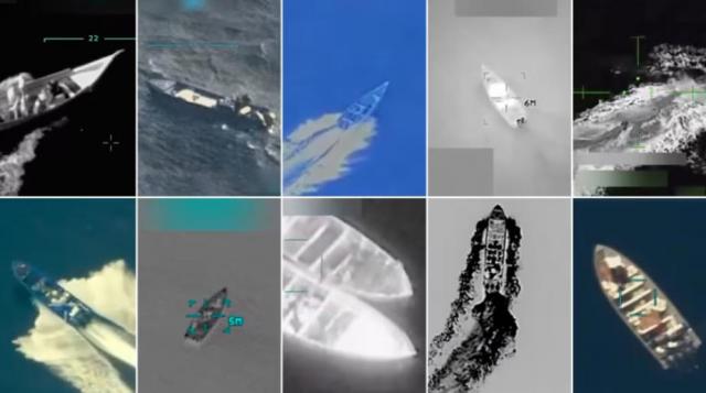 美军近期对加勒比海所谓"贩毒船"进行打击时的画面。(图片来源:央视新闻)