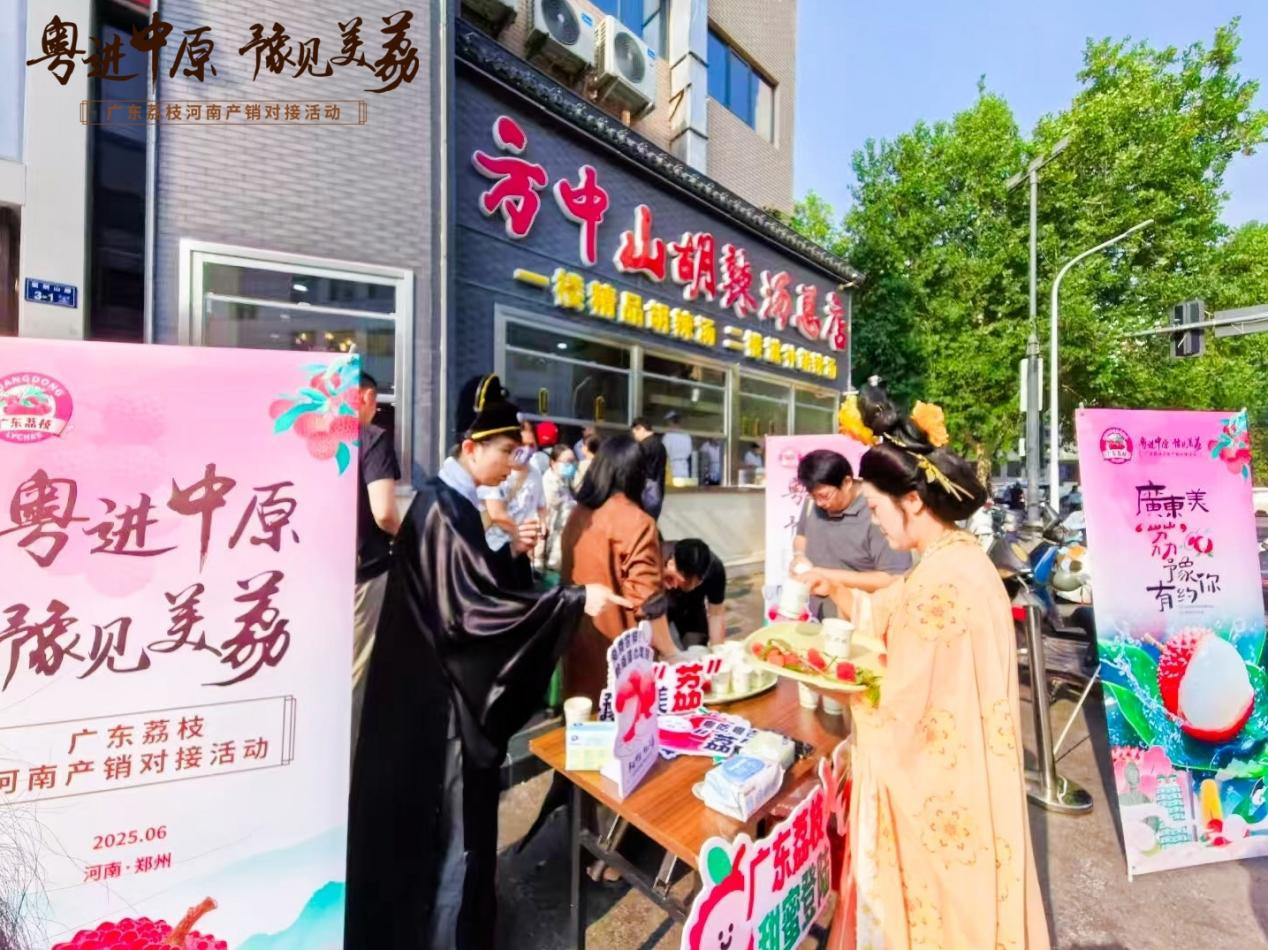 广东荔枝品鉴推介和快闪活动走进郑州核心商圈、网红创意园、街市早餐店等地。