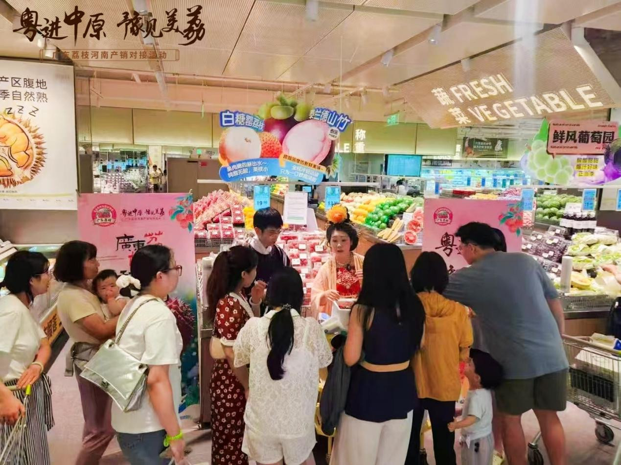 会场之外,广东荔枝在当地商超、街头社区掀起“甜蜜旋风”。在郑州丹尼斯百货商超卖场,广东精品荔枝正式开售。此外,多场广东荔枝品鉴推介和快闪活动,走进郑州核心商圈、网红创意园、街市早餐店等地。昔日“一骑红尘”的宫廷珍馐,如今已成为中原百姓触手可及的“夏日琼浆”,甜蜜登场,香气满溢。