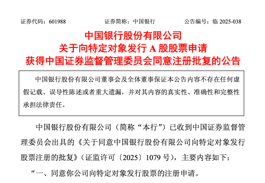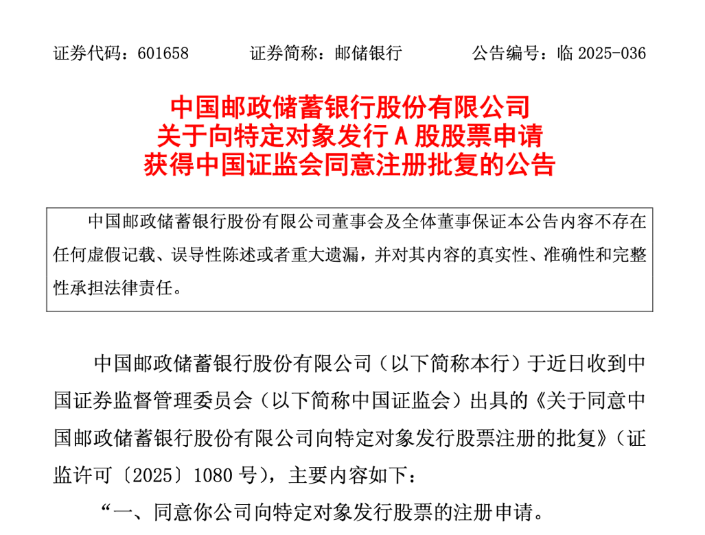 5月23日晚间,中国银行、交通银行、邮储银行相继发布公告称,向特定对象发行A股股票申请已获得中国证监会同意注册批复。