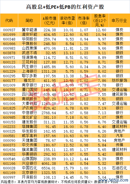 低PE+低PB的红利资产股仅33只,股息率最高超12%低PE+低PB的红利资产股仅33只,股息率最高超12%